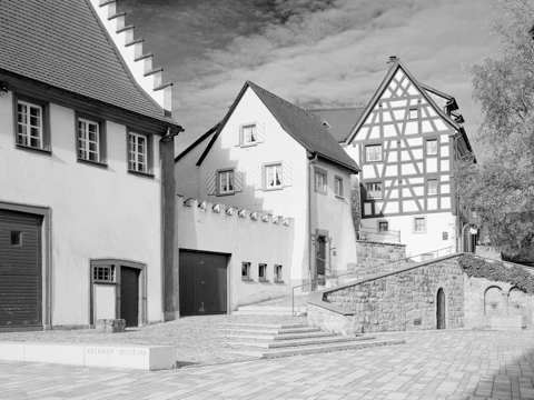 DER KELNHOFPLATZ IST DIE KEIMZELLE DER STADT BRÄUNLINGEN. HIER STAND IM FRÜHEN MITTELALTER DIE ORTSBURG. DAS DENKMALGESCHÜTZTE GEBÄUDE DES KELNHOFMUSEUMS SOWIE RESTE DES EHEMALIGEN BURGZUGANGS DOMINIEREN DEN STADTRAUM. EIN EINHEITLICHER GRANITBELAG VON HAUS ZU HAUS STÄRKT DEN NEU GEWONNENEN PLATZ. DER EHEMALIGE BURGZUGANG WURDE DURCH DIE ERGÄNZUNG MIT ZUSÄTZLICHEN STUFEN UND SITZBLÖCKEN GESTÄRKT UND IST NUN DER DREH- UND ANGELPUNKT DES PLATZES. DER FÜR DIE FASNET WICHTIGE ORT DES HEXENFEUERS WIRD DURCH EINEN KREIS AUS ALTEM WACKENPFLASTER ERLEBBAR GEMACHT. DREI LICHTSTELEN MARKIEREN DAS NICHT MEHR EXISTENTE EHEMALIGE WALDTOR UND SIGNALISIEREN DEM AUTOFAHRER DEN ZUGANG ZUR ALTSTADT.