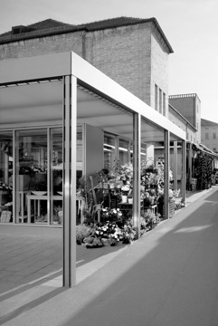 EINE FLÄCHE AUS HELLEN GRANITPLATTEN, BEBAUT MIT DREI NEUEN MARKTSTÄNDEN SOWIE DEM FLEISCHHALLENVORDACH, BILDET DEN NEUEN MARKTBRUNNENPLATZ AUF DEM AUGSBURGER STADTMARKT. EINEN KONTRAPUNKT ZU DEN KOMPLEXEN TECHNISCH- UND NUTZUNGSBEDINGTEN VORGABEN SETZT DIE RUHIGE ARCHITEKTURSPRACHE DER RAUMBILDENDEN STAHL- GLASÜBERDACHUNGEN, DEREN TRANSLUZENTE SPANNDECKE TAGSÜBER UND IN DEN ABENDSTUNDEN DEN VERKAUFSFLÄCHEN ANGENEHMES LICHT SPENDET. DIE DARUNTER ANGEORDNETEN FASERZEMENTVERKLEIDETEN MASSIVHOLZBOXEN SPIEGELN IM ERSCHEINUNGSBILD IHRE JEWEILIG INDIVIDUELLE NUTZUNG WIDER.