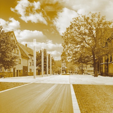 BRÄUNLINGENS GROSSE STÄRKE IST SEINE STADTGESCHICHTE. DIE AUF DIE ZÄHRINGERGRÜNDUNG ZURÜCKGEHENDEN WEITEN STADTRÄUME SIND DABEI BESONDERS ZU ERWÄHNEN. DIE FÜR DIE STADT BESONDERS MARKANTEN BEREICHE WERDEN ZU URBANEN PLÄTZEN AUFGEWERTET. EIN TEPPICH VON GELB- GRAUEM GRANIT VERBINDET GEGENÜBERLIEGENDE HAUSREIHEN ZU EINEM ENSEMBLE. EINZELNE EINGESTREUTE FLÄCHEN AUS VORGEFUNDENEM ALTEM WACKENPFLASTER MARKIEREN HISTORISCHE ORTE UND LADEN ZUM VERWEILEN EIN.
