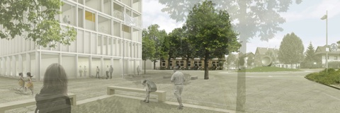 DIE GERINGE GRUNDFLÄCHE KOMMT EINER GROSSZÜGIGEN FREIANLAGENGESTALTUNG ZU GUTE UND BEWAHRT ALLE PROJEKTIERTEN STÄDTEBAULICHEN OPTIONEN FÜR DIE ZUKUNFT.