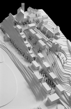 ALS STÄDTEBAULICHER LEITGEDANKE SOLL DIE ERGÄNZUNG DER STADTSILHOUETTE UNTER DEN VORHANDENEN TOPOGRAPHISCHEN PARAMETERN ERFOLGEN. DABEI SOLL, FLANKIERT VON WOHNBEBAUUNG UND SENIORENWOHNANLAGE, ENTLANG EINER PROMENADE ÜBER DIE BESTEHENDEN GELÄNDEABTREPPUNGEN EIN SENSIBLER ABER AUCH PRÄGNANTER ANSCHLUSS AN DAS LANDSCHAFTSSCHUTZGEBIET DER DONAUAUEN IM TAL GESCHAFFEN WERDEN.